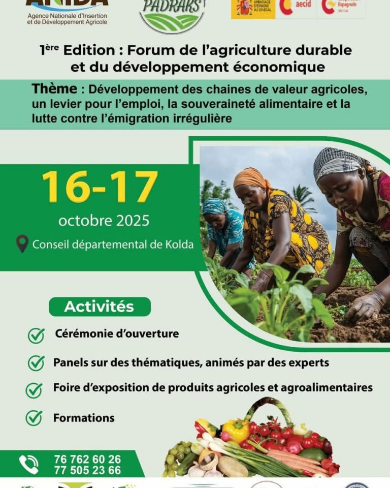 Forum de l’agriculture durable du 16 au 17 octobre à Kolda marquant la clôture du projet PADRAKS et le…