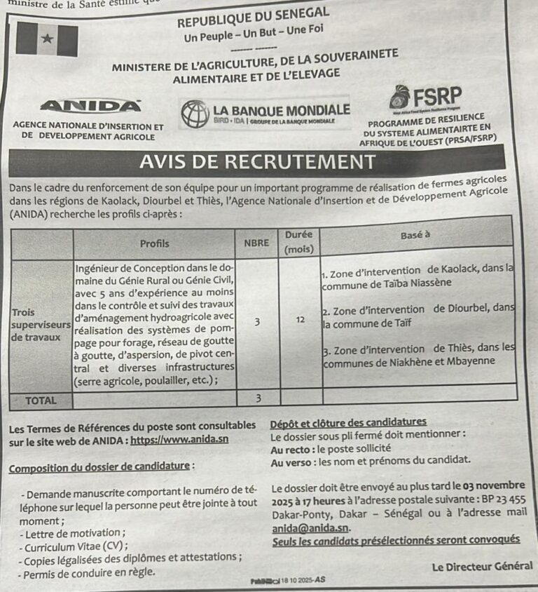 ALERTE : Pour des raisons techniques veuillez envoyer vos candidatures sur le mail 📬 anidagriculture@gmail.com
