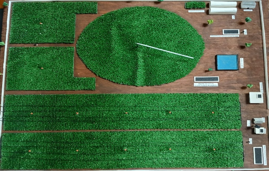 Ainsi, un modèle de base standard d’une superficie de 20 ha au plus a été retenu avec quelques améliorations notamment l’ajout d’un mixte de technologie d’irrigation (goute à goute, pivot, aspersion), d’une serre pour l’amélioration de la productivité et d’un bassin de reprise.